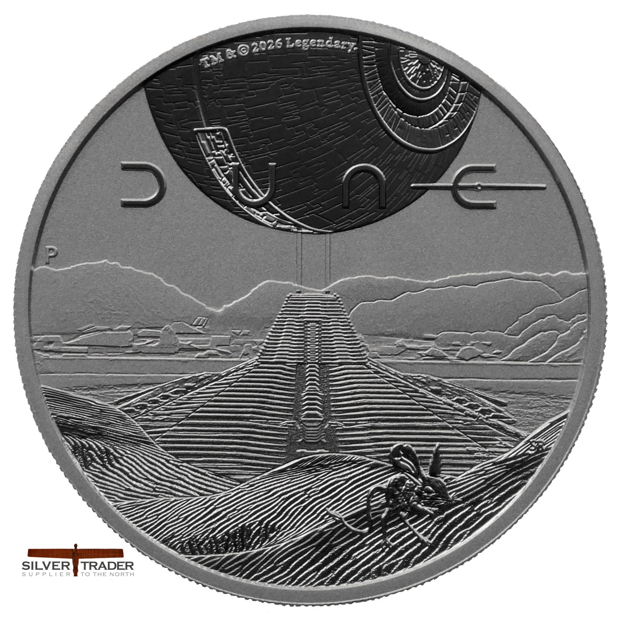 2026 Dune the Desert Planet Australian 1oz Silver Bullion Coin, The motive features a detailed depiction of the desert world Arrakis.